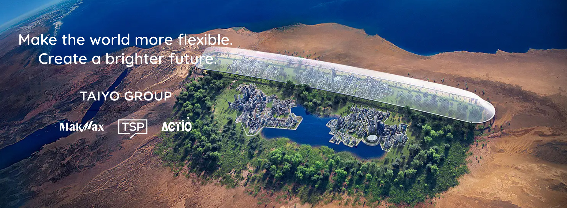 “Creating an artificial mountain range made from membranes in the desert. The mountains will make it rain, and a city can be built.” The giant membrane and city built in the desert depict the landscape the Taiyo Group hopes to achieve together. A city is created through a combination of hardware and software. We want to create a city where people can live lively lives and be surrounded by smiles, by combining the power of Taiyo Kogyo’s architecture, TSP’s events, and ACTIO’s facility management. This goal can only be realized by the Taiyo Group, with the ability to work side by side, from planning to establishment.