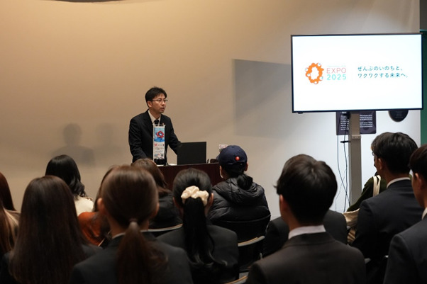 大阪府市万博推進局の職員の方から、2025年大阪・関西万博の最新情報や魅力、見どころをご紹介いただきました。