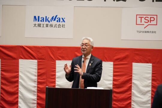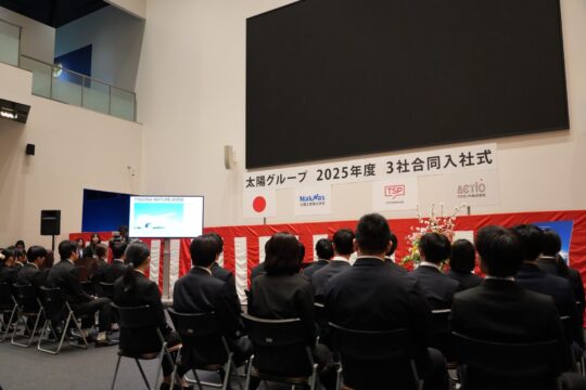 時代は変化し続けていますが、皆さんの挑戦が太陽グループの未来を創ります。太陽グループは様々な可能性を持っています。皆様が加わり、さらに魅力的なグループへと成長していくと信じていますので、困難も楽しみながら一緒に頑張っていきましょう。本日はご入社おめでとうございます。