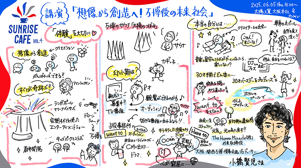 今回のゲストは、大阪・関西万博 催事企画プロデューサーとして活躍する小橋賢児さんです。講演タイトルは「想像から創造へ!万博後の未来社会」。